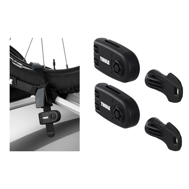 Ein Schliessset zum Abschliessen der Felgenhaltebänder des Fahrradträgers bietet zusätzlichen Diebstahlschutz.